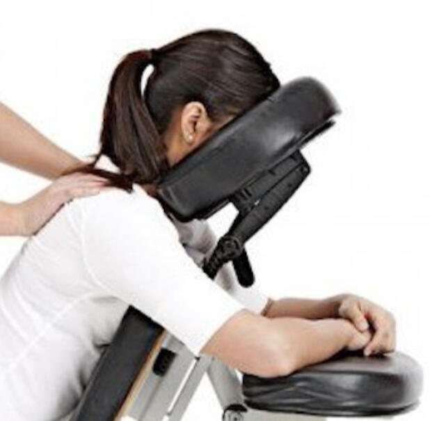 Massage van de rug - nek en schouders gebruik makend van een speciale behandelstoel. Ideaal om op korte termijn te zorgen dat de rug, nek en schouderpijn verholpen wordt en je er terug tegen aan kan.